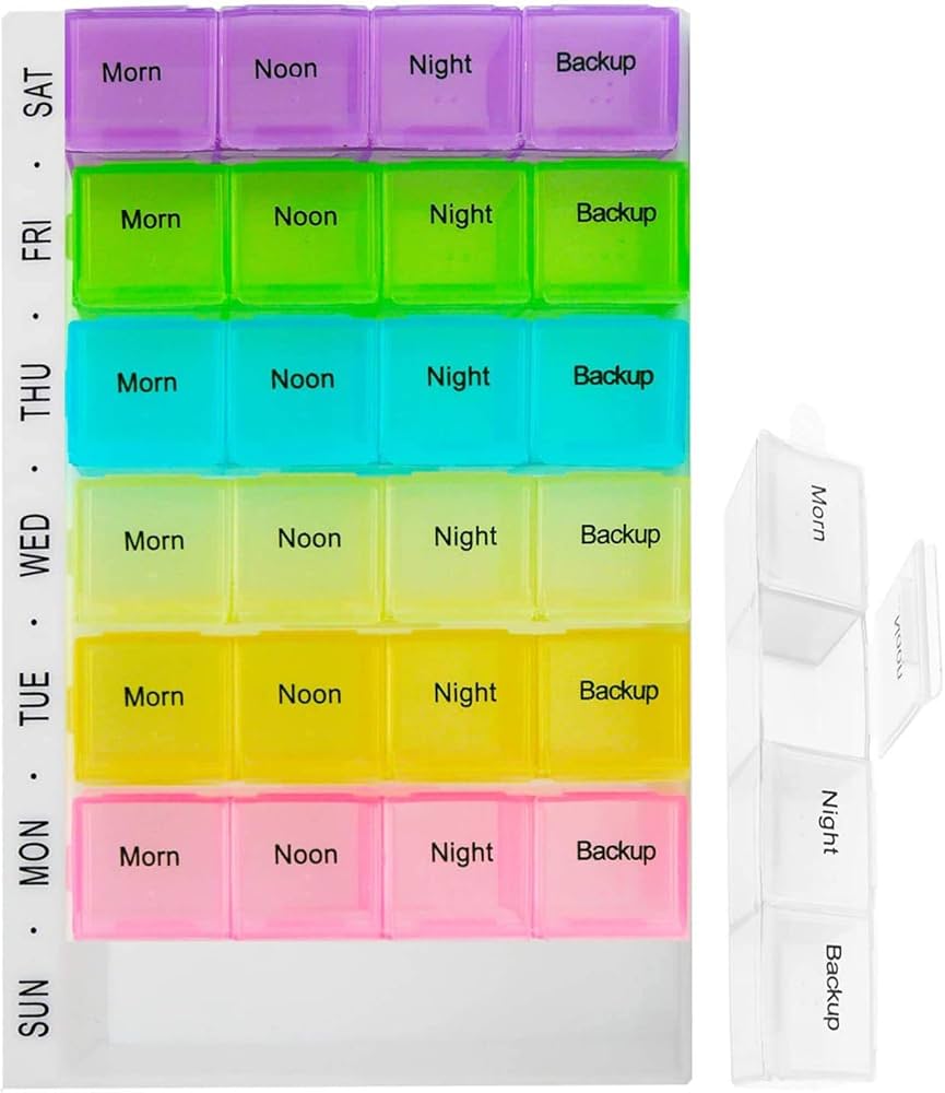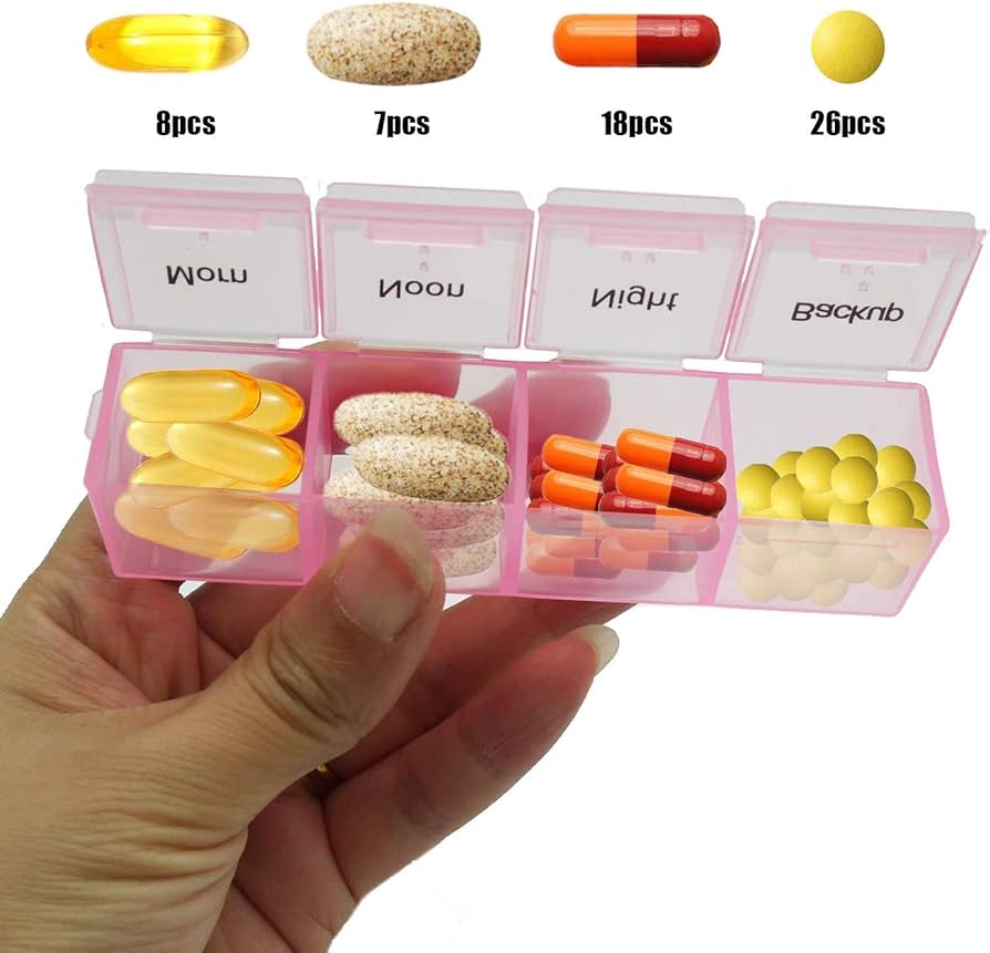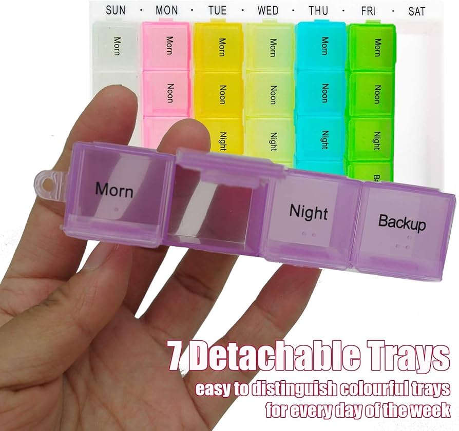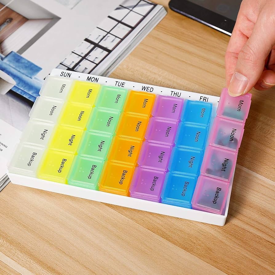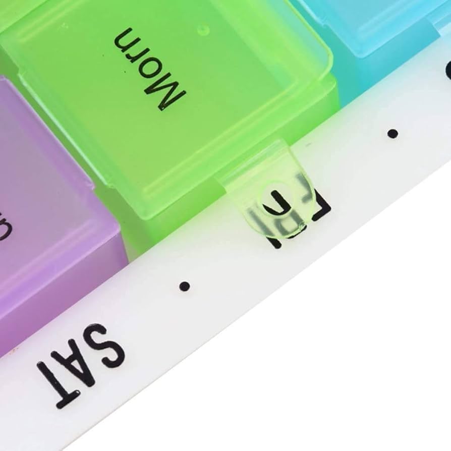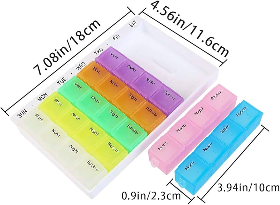 حافظ على أدويتك منظمة ومرتبة مع منظم حبوب الدواء الأسبوعي العملي والأنيق! تصميم ذكي بألوان زاهية لكل يوم من أيام الأسبوع، مع 4 خانات منفصلة (صباح، ظهر، ليل، احتياطي) لتوزيع جرعاتك بسهولة ودقة. مثالي لكبار السن، والأشخاص الذين يتناولون أدوية متعددة، أو أي شخص يسعى للحفاظ على نظام دوائي صحي ومنظم. مصنوع من مواد عالية الجودة وآمنة، وسهل التنظيف والحمل. وداعاً للارتباك، ومرحباً بالالتزام بصحتك!